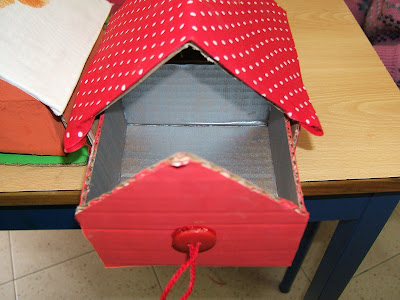 Guarda-Jóias feito em papelão, com tecidos, botões, lã...
