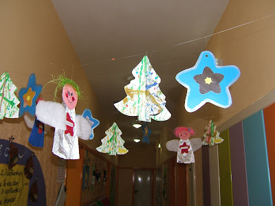 Estão presentes Presépios e Árvores de Natal elaborados pelos pais da minha sala e da salinha da minha colega Filipa.
